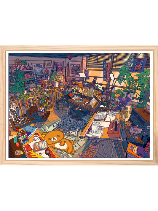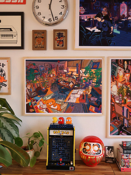 Sur la boutique, retrouvez toutes les illustrations du studio déclinées en affiches décoratives, tapis de souris, puzzles, pins en métal, t-shirts ou casquettes.
