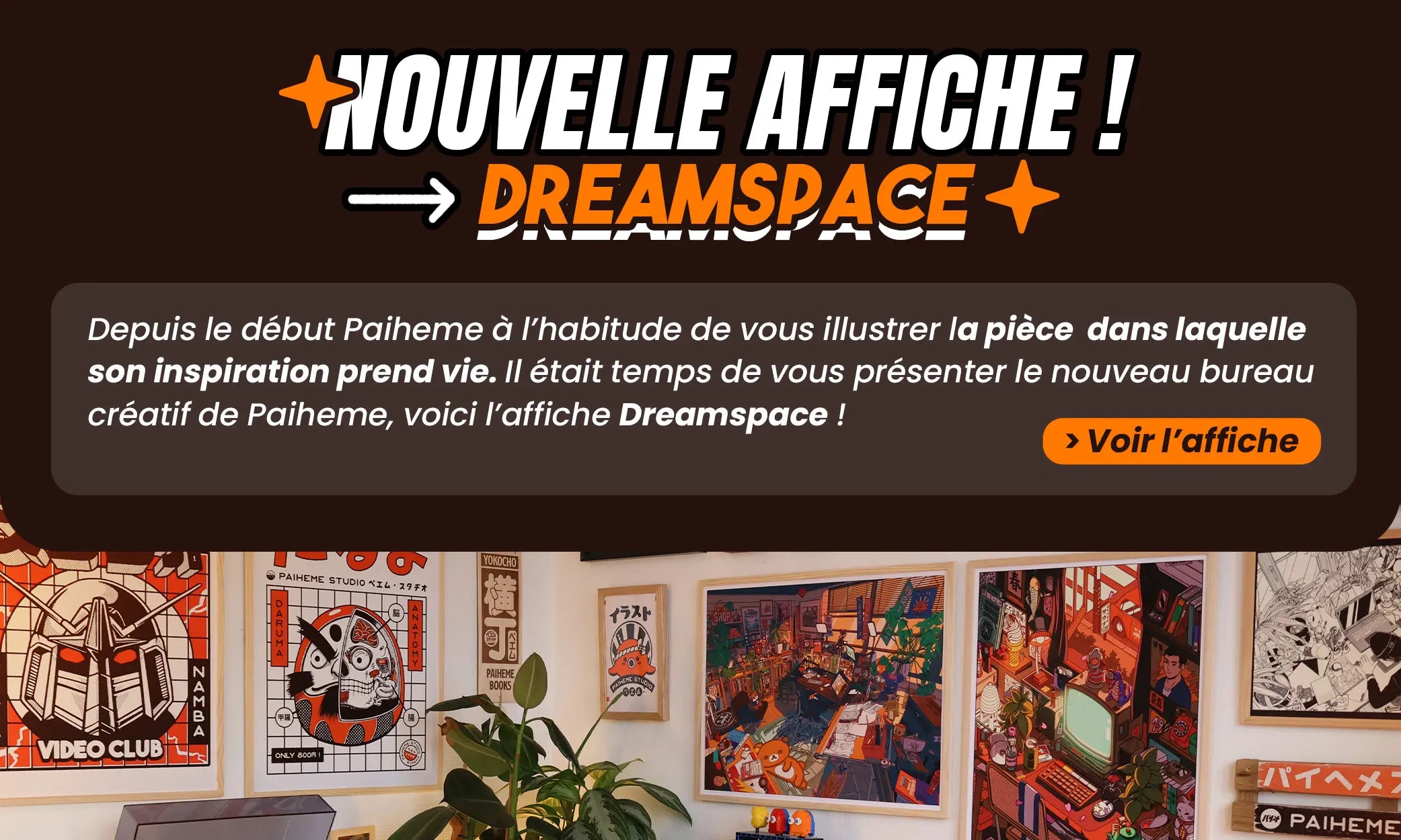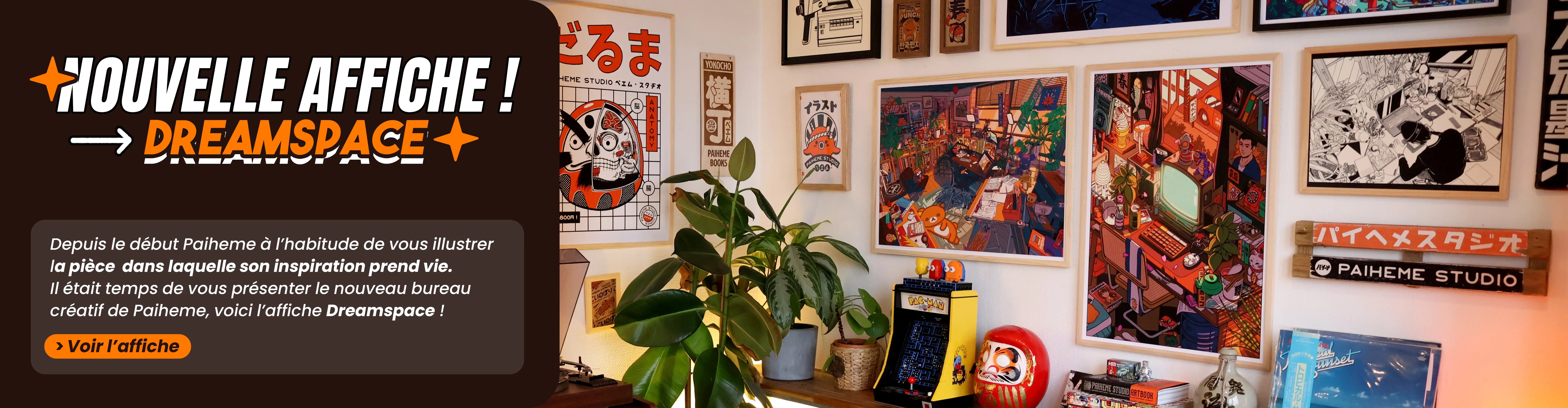Depuis le début, Paiheme a l'habitude d'illustrer la pièce dans laquelle son inspiration prend vie. Il était temps de vous présenter le nouveau bureau créatif de Paiheme, voici l'affiche "Dreamspace" !