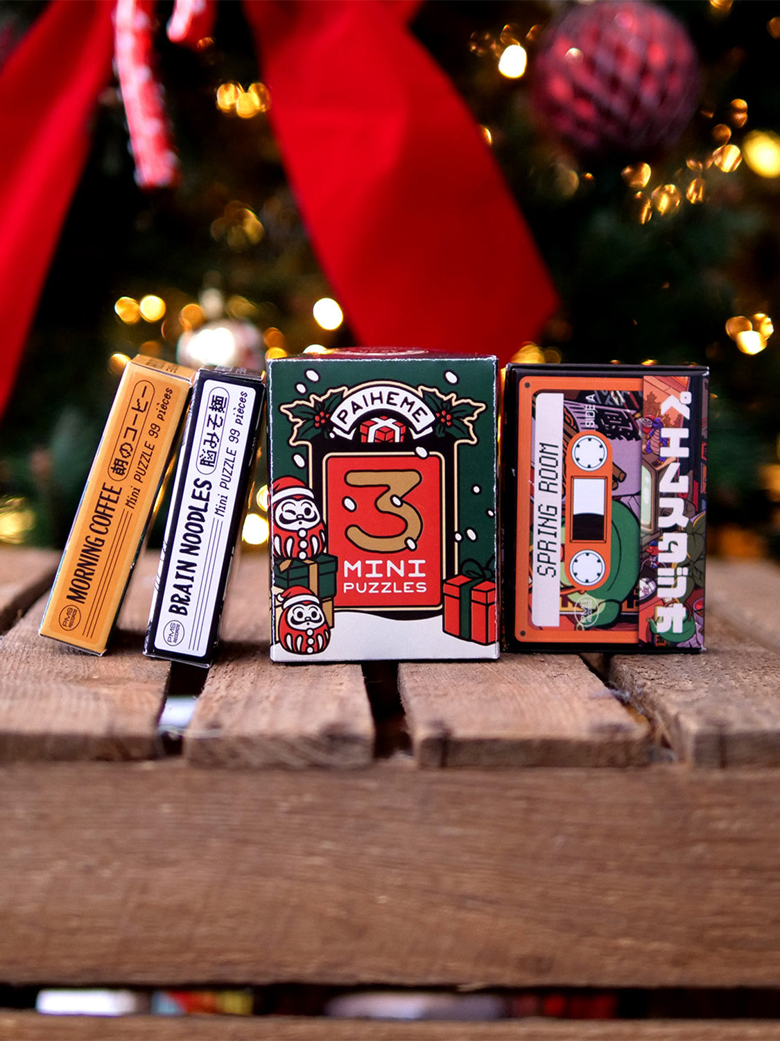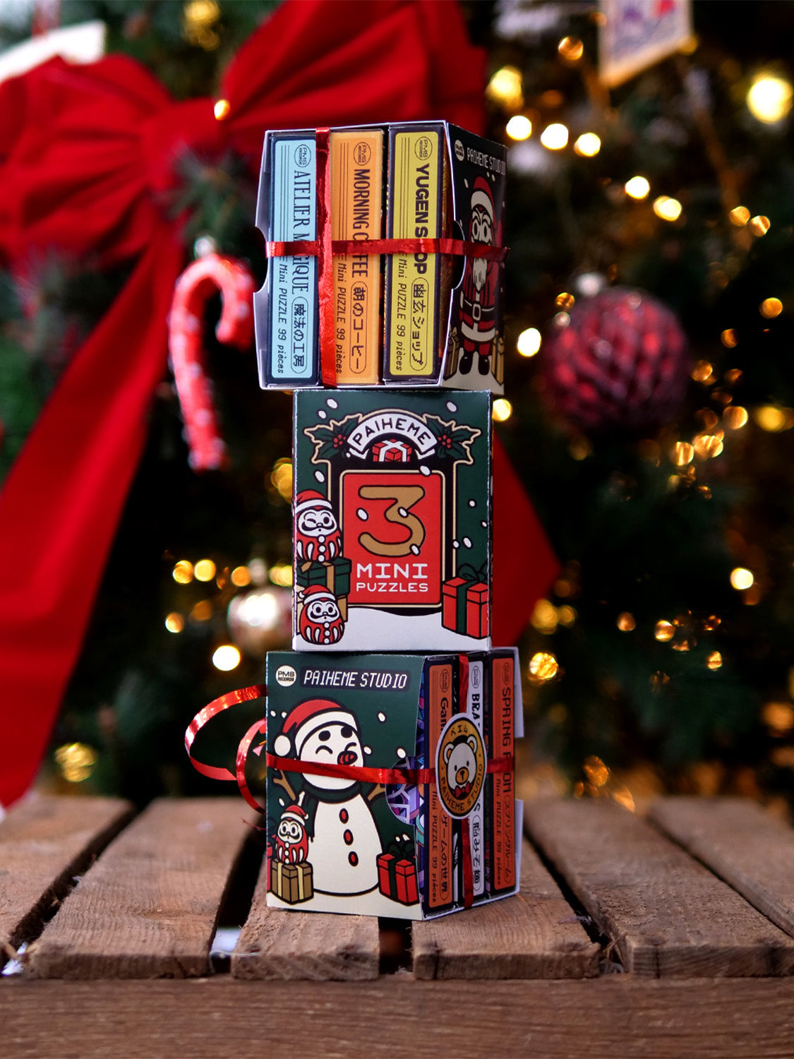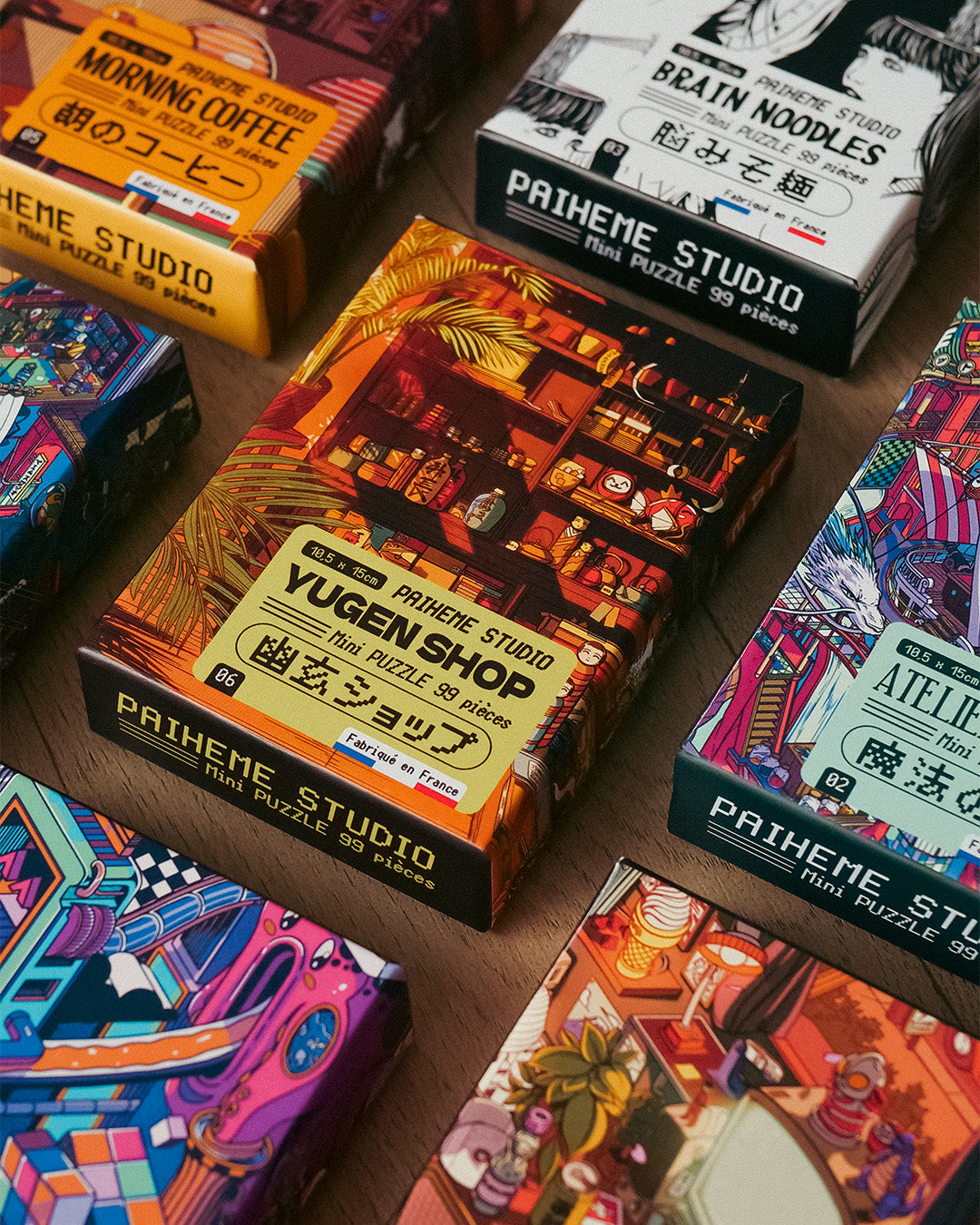 Découvrez un pack ludique et esthétique regroupant 3 mini-puzzles de 99 pièces, chacun illustré dans l’univers graphique vintage et coloré propre à Paiheme Studio. Une petite activité détente, idéale à offrir pendant les fêtes !