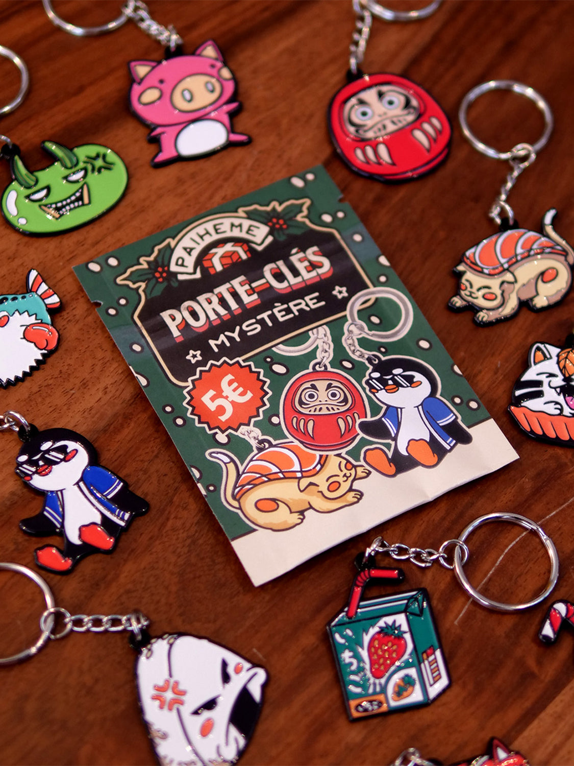 Ajoutez une touche de fun et de mystère à vos fêtes ! Chaque porte-clés est tiré aléatoirement parmi une collection illustrée par Paiheme Studio. On ne sait jamais sur lequel on va tomber… et c’est tout le plaisir !